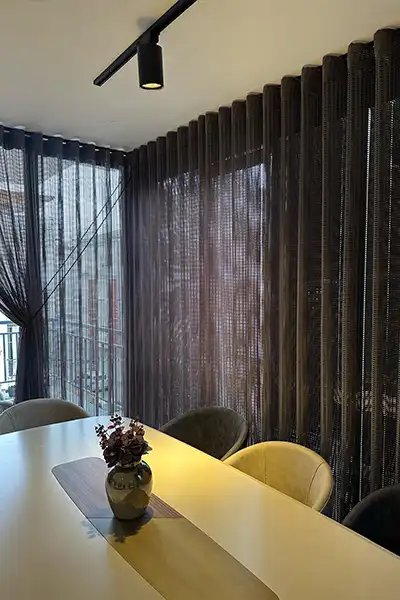 Vertical sheer curtains are perfect for large windows and spacious areas. They blend sheer and vertical curtain features,